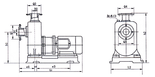 | 型号 | D1 | D2 | Q1 | Q2 | Q3 | Q4 | h1 | h2 | e1 | e2 | e3 | L1 | L2 |